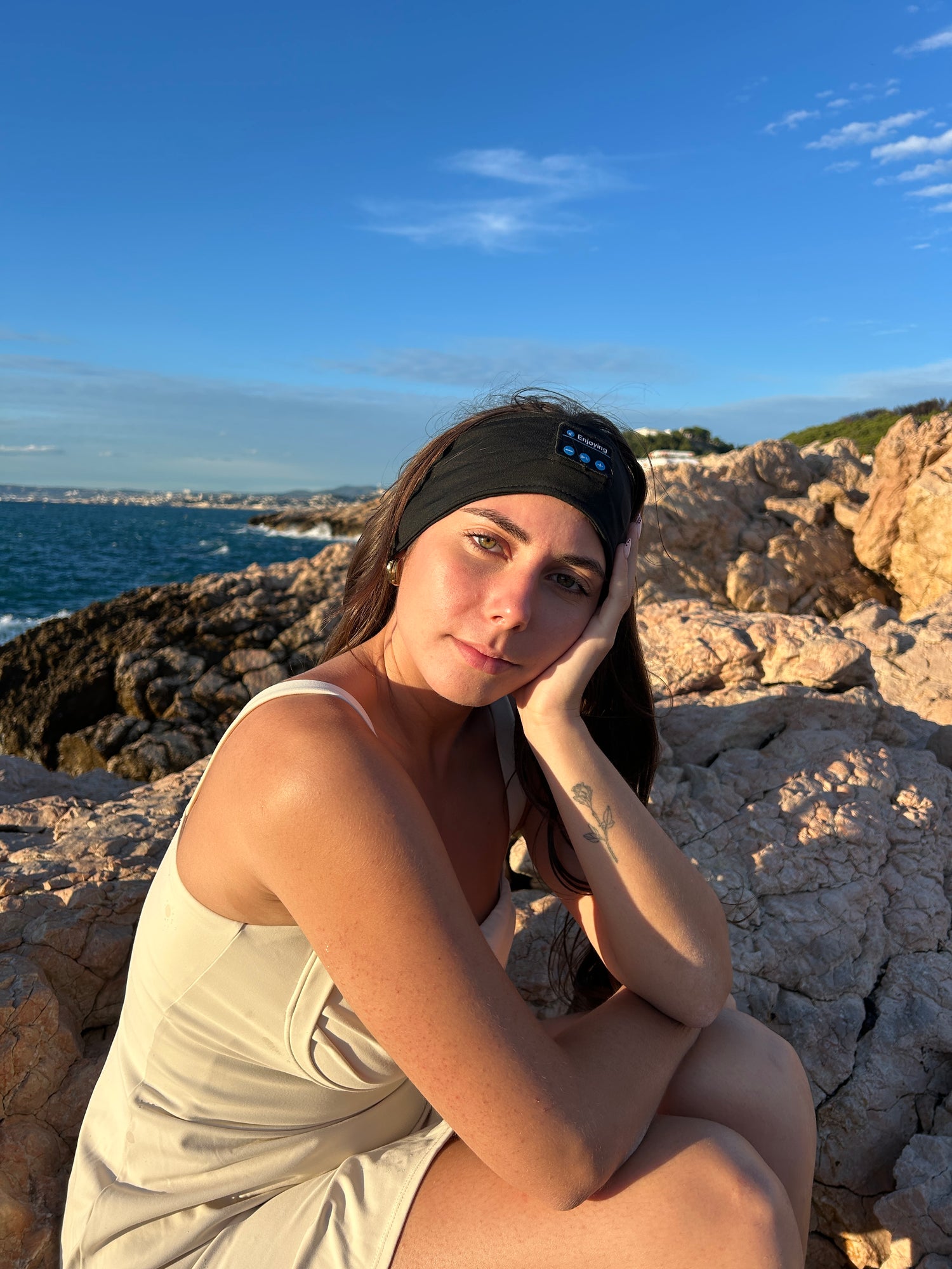 Moovband a été conçu pour être confortable, même quand tu es allongé ou détendu dans ton lit. Il suffit de le mettre, de le connecter à ta musique ou à des sons apaisants, et tu pourras profiter d’un moment de détente sans pression sur les oreilles.